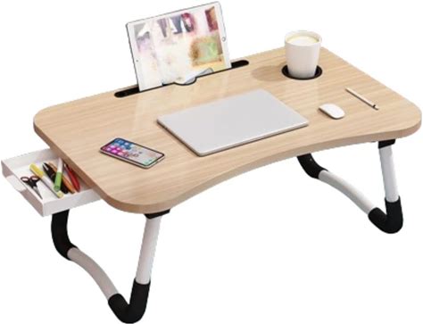 LEUCHTA Foldable Lap Desk, 23.6 Inch Portable Wood Laptop Desk Table Workspace Organizer Bed Tray With iPad Slots, Cup Holder And Drawer, Anit-Slip For Working Reading Writing, Eating, Watching-Walnut