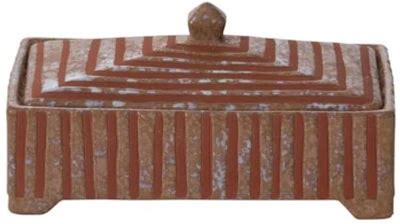 Adler Brown 8" X 4" Striped Footed Reactive Glaze Ceramic Box - 4"W X 8.25"D X 4"H At Living Spaces