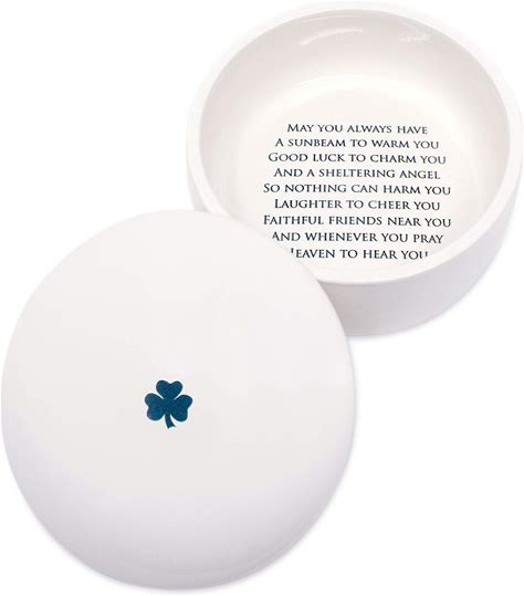 Susabella - Baptism Gift Or First Communion Gift, Ceramic Keepsake Box With Irish Blessing - Round Box With Shamrock In Green For Godchild