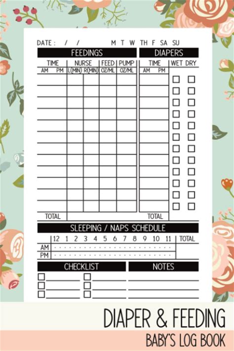 Diaper And Feeding Log: 4 Month Daily Baby/Newborn's Schedule Tracking Journal For Nanny & New Parents To Track Nursing, Feeding, Sleeping, Diaper
