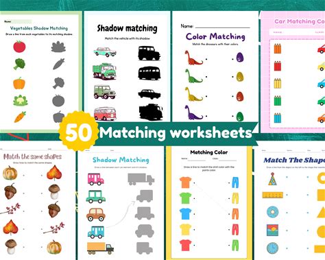 Matching Worksheets For Preschool, 50 Page Printable Matching Activities, Shadow Color Shape Animal Matching, Toddler Learning