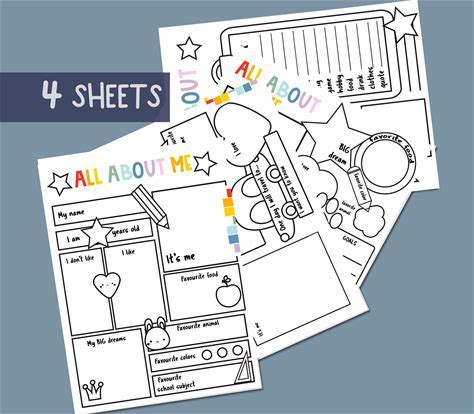 All About Me Kids Activity Sheets: Printable Writing Prompts (JPG)
