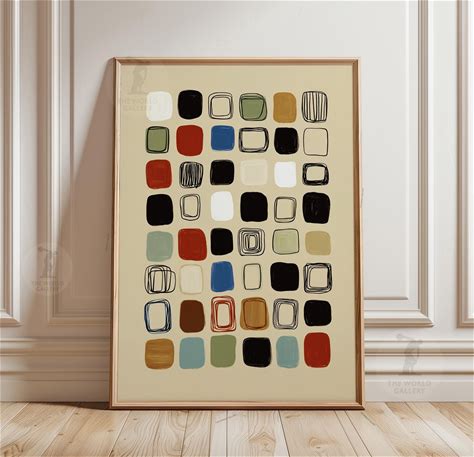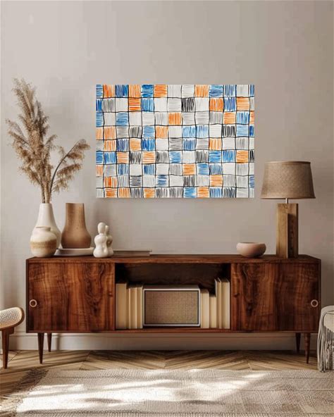 Mustard Geometric Wall Art - Abstract Grid Pattern Print, Modern Scandinavian Mid-Century Home Decor