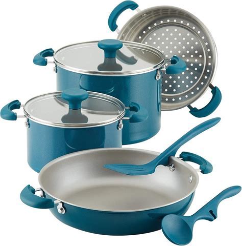 Rachael Ray 8-Piece Enameled Stacking Cookware Set | Teal Shimmer At Everything Kitchens