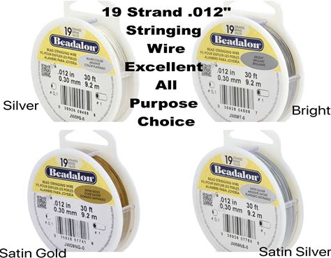 19 Strand, .012" Beadalon Stringing Wire, Stainless 15 & 30 ft. Silver, Satin Silver, Satin Gold, Bright