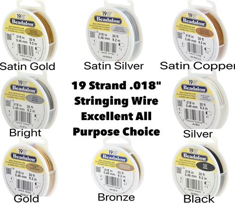19 Strand, .018" Beadalon Stringing Wire, 15 & 30 Ft., Satin Gold, Satin Silver, Satin Copper, Silver, Gold, Bright, Black, Bronze