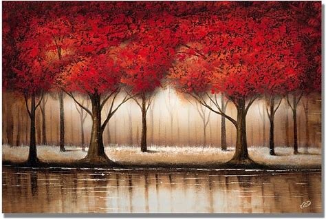 Mintura Handmade Oil Painting On Canvas Wall Art Decoration Modern Abstract Red Tree Picture For Home Decor Rolled Frameless Unstretched Painting