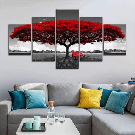 Natural Landscape Branching Red Tree Multi Canvas Wall Art Ideas, Multi Piece Panel Canvas Home Decor Housewarming Gift Ideas Framed Prints
