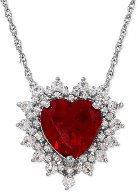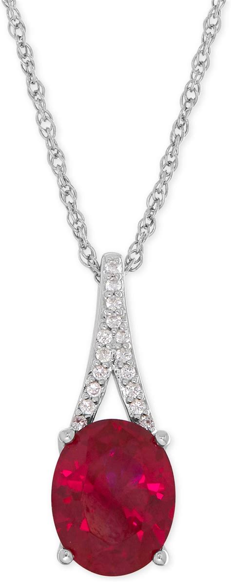 Lab Created Ruby Solitaire Pendant Necklace | Sterling Silver | White | Size 18" | Helzberg Diamonds