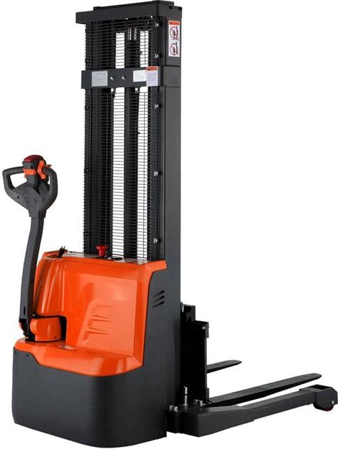 118 in. Lift Height 2640 Lbs. Straddle Legs Full Power Electrical Stacker Fork Over Stacker Orange