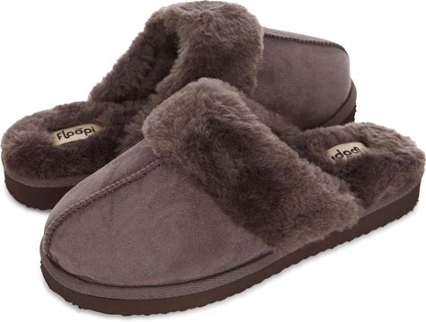 Floopi House Slippers For Women, Fur Lined Clog Womens Slippers Cozy Memory Foam With Indoor & Outdoor Anti Skid Sole