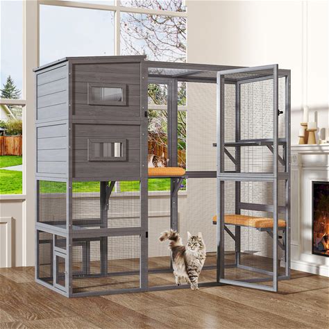 TIMHAKA Large Indoor Cat Catio, 4 Tier Outdoor Cat Enclosures House For Cats With Waterroof Roof, 3 Resting Rooms, 3 Platforms, Cats Catio Connect To