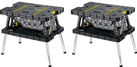 Keter - Folding Portable Workbench Sawhorse W/12 in Clamps, Black/Yellow (2 Pack) - Black And Yellow