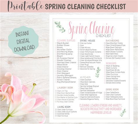 Spring Cleaning Checklist PDF Digital Download