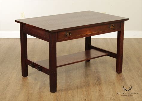 Stickley Mission Oak Arts & Crafts Spindle Writing Desk Or Library Table