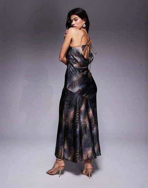 ASOS DESIGN Strappy Tie Back Cowl Front Satin Maxi Dress In Dark Snake Print-Multi - Multi (Size: 0)