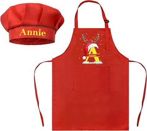 Personalized Christmas Colorful Apron And Hat Set For Kid Adjustable Kid Apron Chef Hat Set With Name And Initial Handcraft Activities Birthday Gift For Kids Red