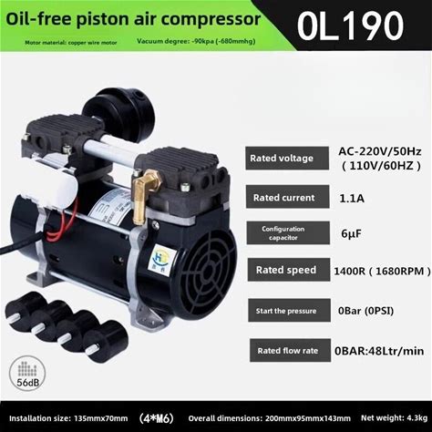 Ac 110V/220V Small Air Compressor Head 230W 8Kg Oil-Free Piston Silent
