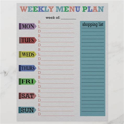 Shop weekly menu template