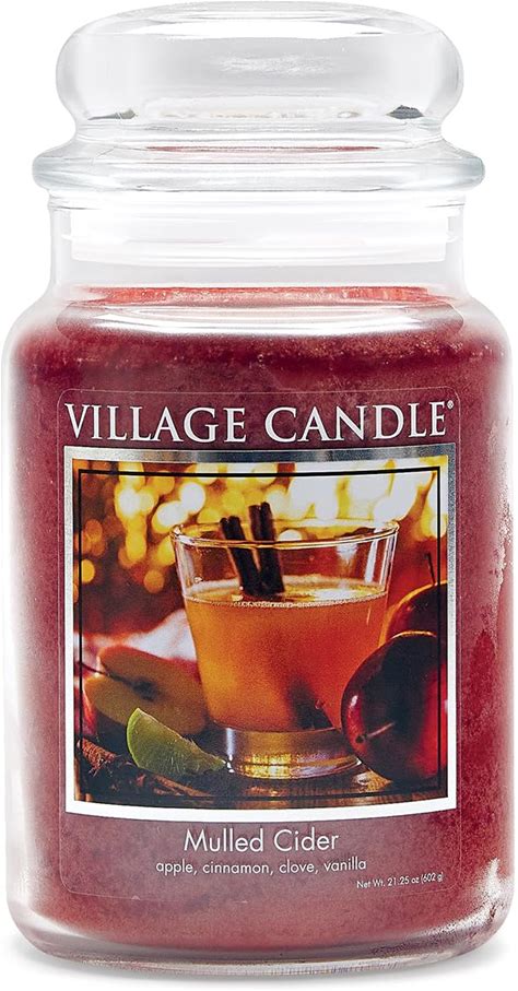 Village Candle Mulled Cider Large Glass Apothecary Jar Scented Candle, 21.25 Oz., Red