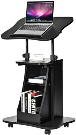 21.5 in. Black Height Adjustable Standing Desk Mobile Podium Cart With Tilt Desktop And Door Cabinet