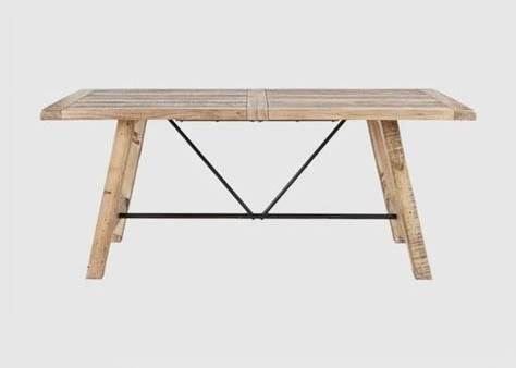 Distressed Natural Wood 72" Farmhouse Rectangular Dining Table | Metal Stretchers 6 Seat - Wood/Metal At Living Spaces