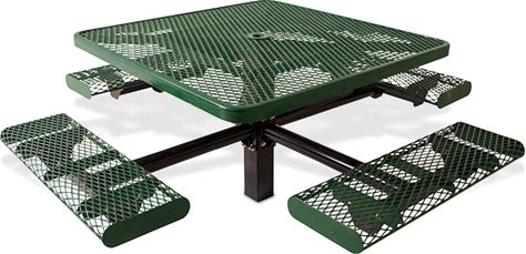 Classic Style 46" Square Commercial Picnic Table Rolled Edge Diamond Pattern Steel With Pedestal Frame | Belson Outdoors® - Model 338S-VR