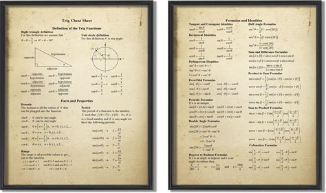 Ekhou Trigonometric Ratio Table, Math Educational Poster Trigonometry Formulas, Sine, Cosine, Tangent Poster Decorative Painting Canvas Wall Art