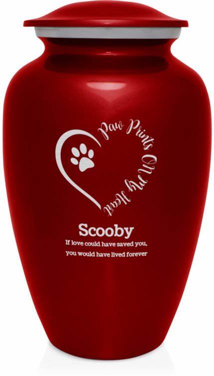 Extra Large Paw Prints On My Heart Pet Cremation Urn - Ruby Red