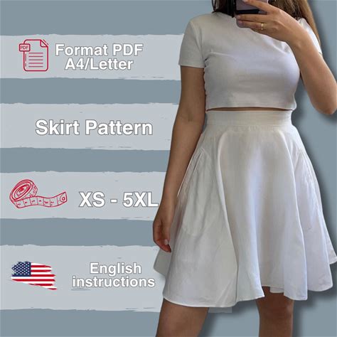 School Skirt PDF Sewing Pattern, Pockets Pattern, Easy Women Skirt Pattern, XS-5XL, Instant Download